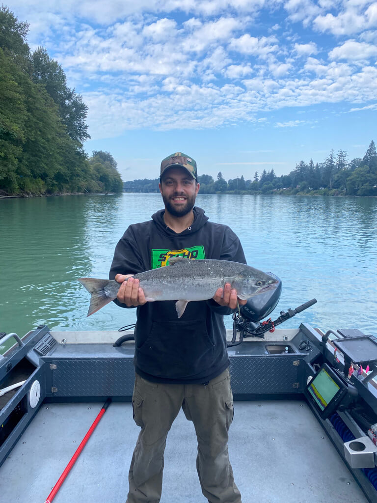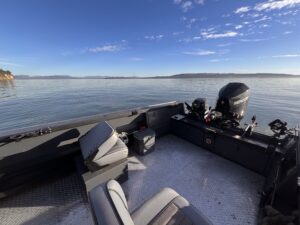 This open model boat is very seaworthy and is equipped with modern electronics from Garmin including Live Scope, dual 12″ displays, auto pilot, and sonar to insure we put you on the fish to the best of our ability. Not only is it well equipped from. a capability perspective it is also loaded with many comfort amenities such as six fully upholstered seats to ensure a comfortable ride while underway, along with a nice place to relax while trolling, talking with friends, or having a snack. The Alumaweld Columbia is well known for its ability to handle rough water while remaining safe and dry as possible for given conditions.